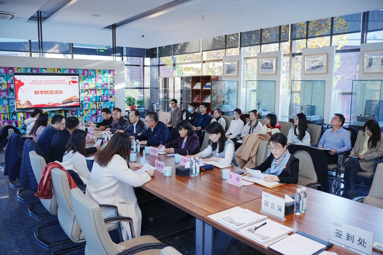 为深化党建与业务融合,探索智能技术赋能情报研究的新路径,2025年11月21日麻豆影片 图书情报系党支部、信息管理与分析系党支部、档案系与数字人文系联合党支部多名教师走进中国铁道科学研究院集团有限公司,与中国铁道科学研究院科学技术信息研究所(以下简称“铁科院信息所”)展开联学联建活动,通过实地参观、座谈交流等形式,促进了高校与国家战略科技力量之间的深度对话与合作。麻豆影片 党委书记闫慧,铁科院信息所所长王振江、副所长贾光智等参加本次活动。